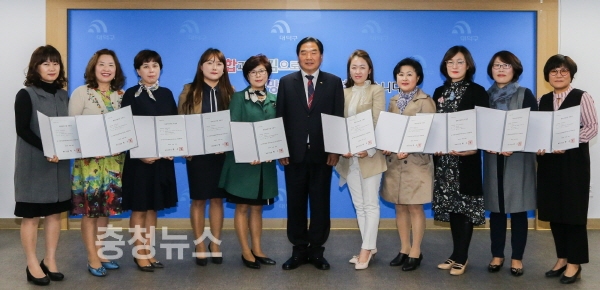 대전 대덕구(구청장 박수범)는 25일 구청 소회의실에서 믿고 맡길 수 있는 지자체형 열린어린이집 10곳을 선정해 지정서를 교부했다.