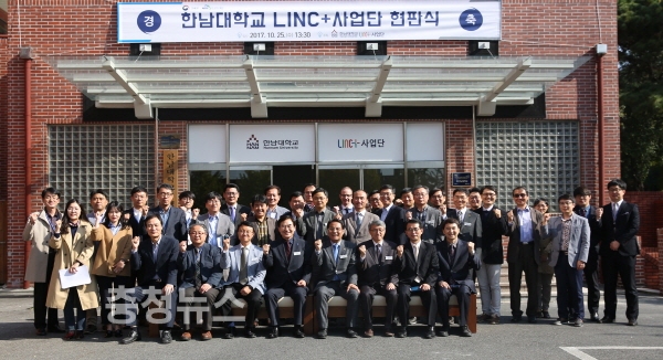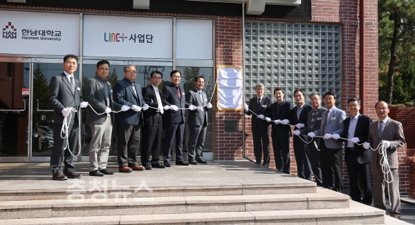 한남대학교 '사회맞춤형 산학협력선도대학 육성사업단'(LINC+)이 25일 교내 평생교육원에서 현판 제막식을 개최했다.
