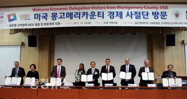 한밭대는 지난 24일 대학 내 컨벤션홀에서 미국 몽고메리 칼리지, 몽고메리카운티 경제개발공사, 몽고메리 지역기업들과 글로벌 산학협력협약을 체결했다.