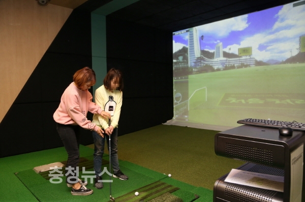 이번 자원봉사는 IT, VR 등 첨단 기술에 강점이 있는 골프존뉴딘그룹의 사업 특색이 반영됐다. 스크린골프 1위기업인 ㈜골프존(대표이사 박기원)에서 개발한 골프 시뮬레이터 및 소프트웨어를 자원봉사에 접목시킨 것.