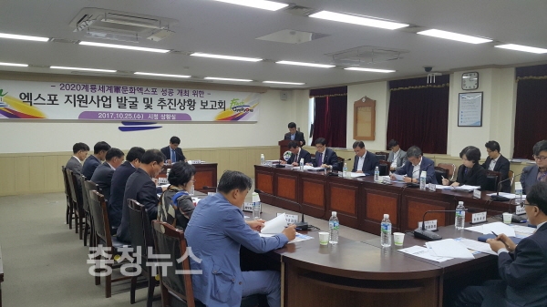충남 계룡시(시장 최홍묵)는 지난 25일 시청 상황실에서 2020계룡세계군문화엑스포의 성공적 개최를 위한 ‘엑스포 지원사업 발굴 및 추진상황 보고회’를 개최했다.
