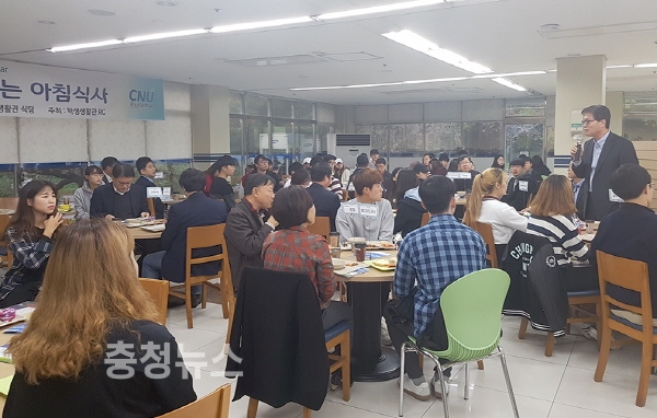 충남대 학생생활관은 26일 오전 학생생활관 카페테리아에서 오덕성 총장과 RC프로그램 참여 학생들이 참석한 가운데 세미나를 개최했다.