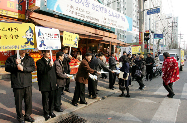 대전광역시 서구(청장 가기산)에서는 겨울철 가스사용 부주의로 인한 화재발생을 예방하고 사고시 주민의 생명과 재산피해를 최소화하기 위해 10일 재래시장 상가밀집지역에서 공무원과 상인회 임원 합동으로 가스안전사고 예방을 위한 캠페인을 전개했다.