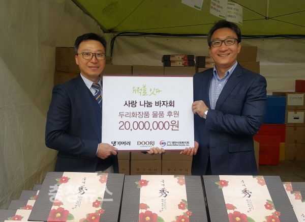 두리화장품(대표이사 주승철)이 사랑 나눔 바자회에 댕기머리 들애수 제품을 후원했다.