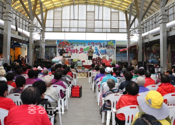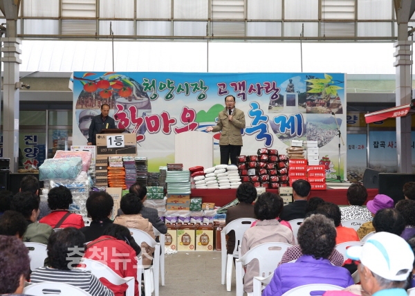 이 자리에 참석한 이석화 청양군수는 “침체되어가는 타 시장과 달리 청양시장은 점점 더 커지고 사람들이 많이 찾는 것은 좋은 품질의 물건을 저렴하게 판매하기 때문”이라며 “더 좋은 환경을 만들기 위한 주차타워 신축과 다목적장터 비가림 시설을 올해 안에 마무리 짓는 등 적극적인 지원을 아끼지 않겠다”고 말했다.