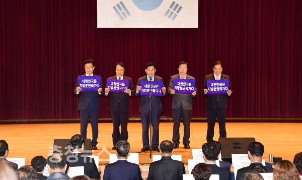 “지방의 경쟁력이 곧 국가의 경쟁력이고 지방이 살아야 국가가 사는 길이다. 진정한 지방자치와 국가균형발전을 위하여 대한민국이 지방분권 국가라는 것을 천명하고 반드시 헌법에 명시해야 한다”고 강조했다.