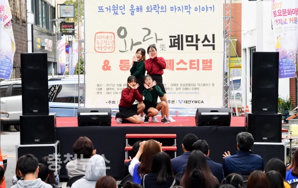 지난 28일 옛 대전극장과 제일극장 거리 일원(대제로 커플존)에서 2017년 마지막 ‘대제로 커플존 토요문화마당’과 ‘청소년 어울림 마당 와락(樂) 폐막식’이 개최되며 시민 5,000여명이 참여해 10월의 마지막 주말을 즐겼다.
