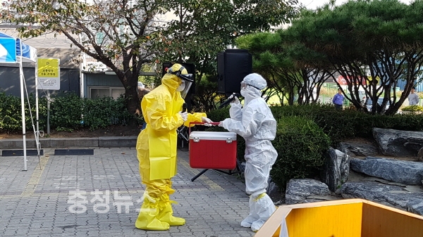 충남 아산시보건소(소장 김기봉)는 지난 27일 신종 및 재출현 감염병 대응 역량강화를 위한‘감염병 위기대응 모의훈련’을 충청남도와 연계해 실시했다.