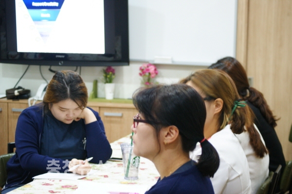 고객만족에 대한 특강을 받고 있는 올리브내과 직원들