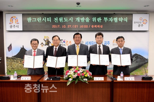 충남 공주시(시장 오시덕)가 전국의 전원생활 희망자를 대상으로 공주 전원도시(가칭 공주팜그린시티)를 개발하는 금강도시개발컨소시엄과 지난 27일 협약을 체결했다고 밝혔다.