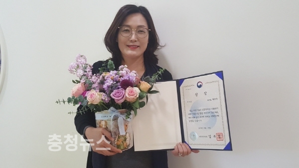 북카페 노리 윤선례 회장의 수상 후 기념촬영 모습