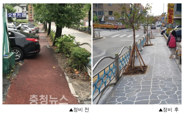또한 통학로 구간내 수벽 및 가로수 뿌리의 비대성장으로 보행로 노면이 팽창되어 안전사고 발생 위험이 있어 금번 사업과 연계하여 정비를 완료했다.