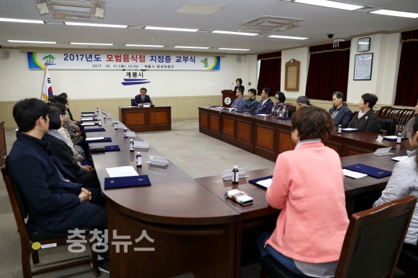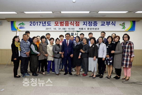 충남 계룡시(시장 최홍묵)는 지난달 31일시청 상황실에서 관내 일반음식점 중 위생수준과 서비스 등이 우수한 모범업소 20개소를 선정하고 지정증을 교부했다.