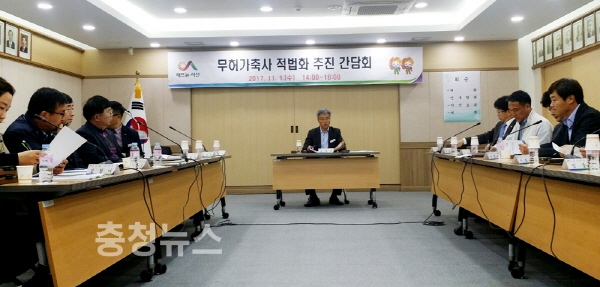 충남 서산시는 무허가 축사 적법화의 조속 추진을 위한 간담회를 시청 상황실에서 관련부서 공무원과 지역 건축사사무소 관계자 20여명이 참석한 가운데 지난 1일 개최했다.
