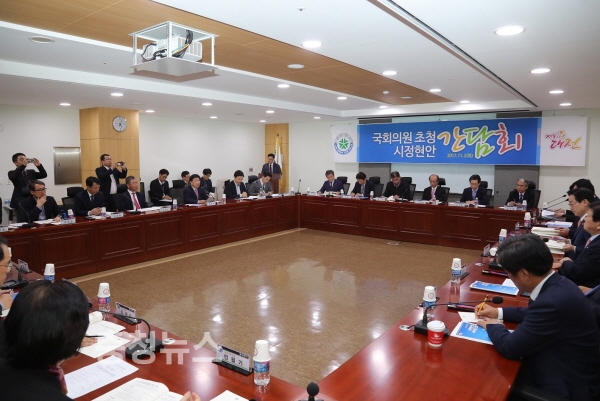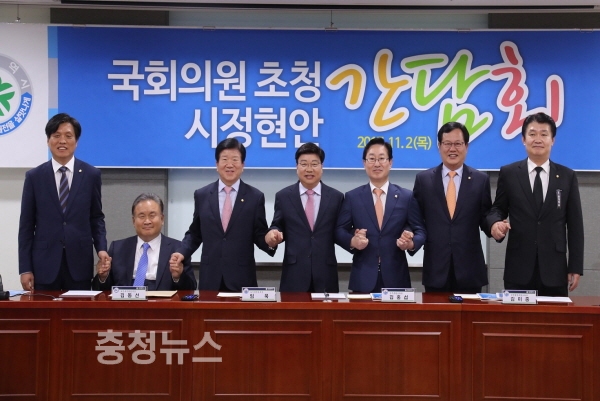 간담회에는 권선택 시장을 비롯해 박범계 의원(대전 서구 을), 박병석 의원(대전 서구 갑), 이상민 의원(대전 유성구 을), 이장우(대전 동구), 이은권 의원(대전 중구), 정용기 의원(대전 대덕구), 조승래 의원(대전 유성구 갑)등 대전지역 국회의원이 모두 참여했다.