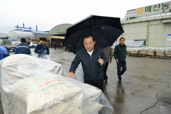 이날 매입현장을 찾은 황선봉 군수는 농협·농산물품질관리원 관계자에게 원활한 매입을 위한 협조를 구하고 농민들의 애로사항 등을 청취하는 등 이야기를 나눴다.