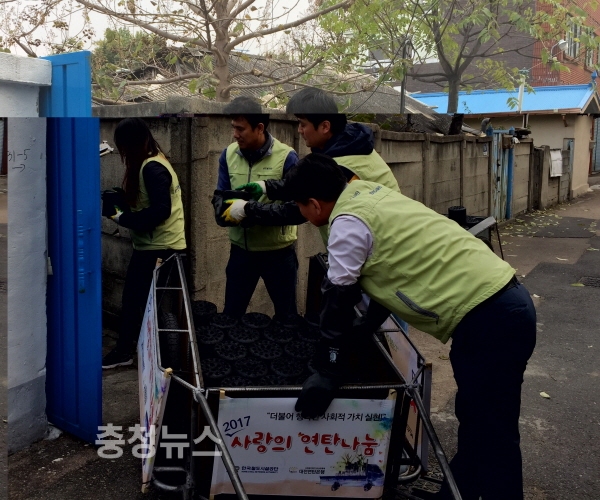 철도공단 KR봉사단 100여명은 대전시 동구 지역의 독거노인 등 30가구에 연탄 6천장과 라면 60박스를 직접 배달하며 사랑의 온기를 나눌 예정이다.