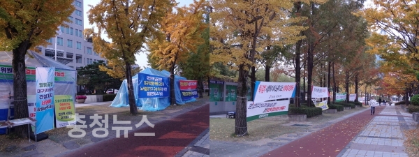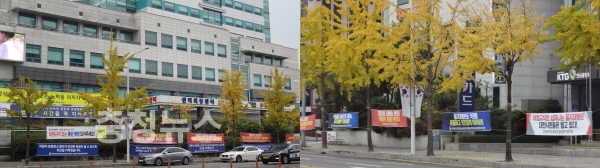 대전시청과 서구청 주변이 가을 단풍이 아닌 불법 현수막에 물들고 있다.