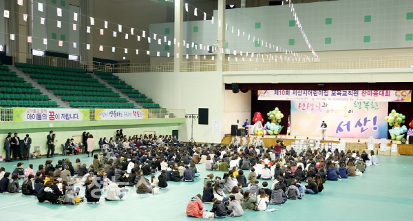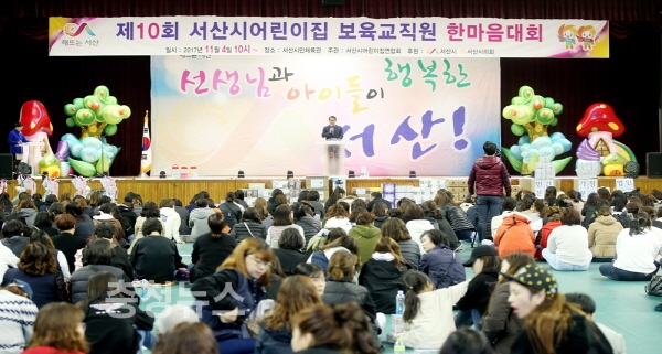 충남 서산 보육교직원들의 축제인‘제10회 서산시 보육교직원 한마음 대회가 4일 서산시민체육관에서 이완섭 시장과 우종재 시의회 의장을 비롯해 어린이집 원장과 보육교사 등 700여명이 참석한 가운데 개최됐다.