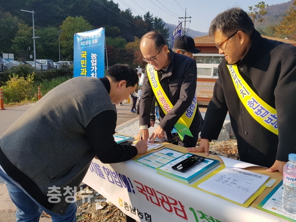 또한, 충난관내 농축협은 경제사업장과 하나로마트 등에서 농업인 조합원과 고객들에게 서명운동의 취지를 알리고 동참을 적극 유도했다.