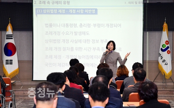 법제처 김혜진 서기관과 유병진 중구 고문변호사가 강사로 초빙되어 조례 속 숨은 규제 발굴과 각종 소송사건 수행요령 등 실무위주의 교육을 실시해 참여자의 호응을 얻었다.
