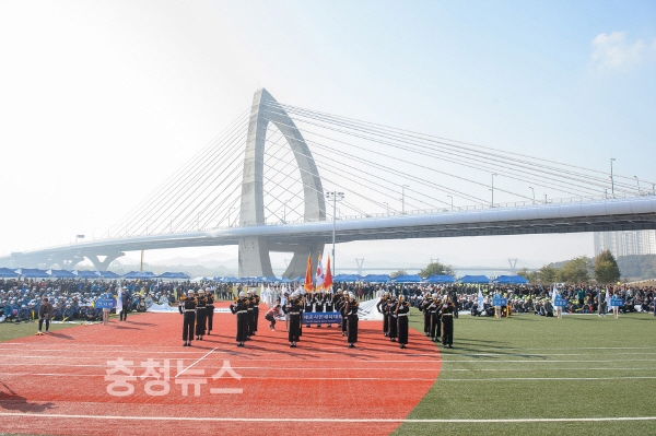 16개 읍면동의 입장식에 이어 해병대사령부의 군악대 및 의장대 공연, 개회식, 성화점화, 전국대학생응원단연합회와 함께하는 몸 풀기 체조를 한후 진행 됐다.