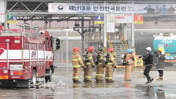 그 중 4일차에 실시한 유류폭발사고 현장훈련은 대한송유관공사에서 17개 기관의 합동참여로 이뤄져 행정안전부 중앙평가단의 우수한 평가를 받으며 종료됐고,