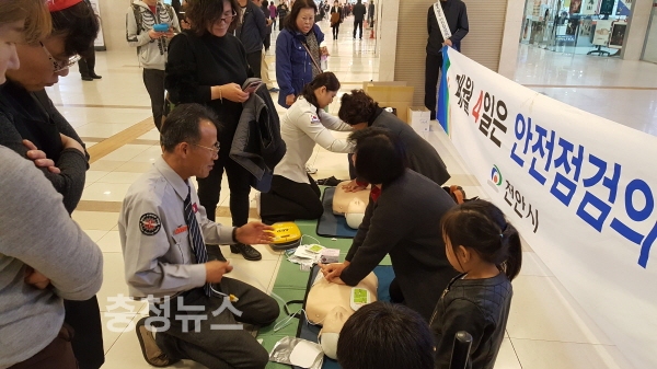 5일차 ‘소화기, 소화전, 심폐소생술’의 앞 글자를 딴 ‘소소심’ 익히기 훈련은 누구나 알아둬야 하며 안전생활화의 첫걸음이 되는 훈련으로, 시민들의 접촉이 많은 종합터미널에서 실시됐다.