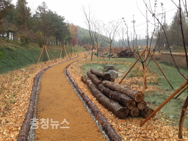 또한, 나비 초화원 입구에서 이어지는 산책로는 야자수 매트로 설치하고 식생군락지를 조성하고 다양한 초화류 및 자생식물을 식재해 봄부터 가을까지 활짝 핀 꽃과 나비, 잠자리 등 곤충을 만나볼 수 있고 시민 및 방문객들이 생태환경을 즐길 수 있도록 했다.