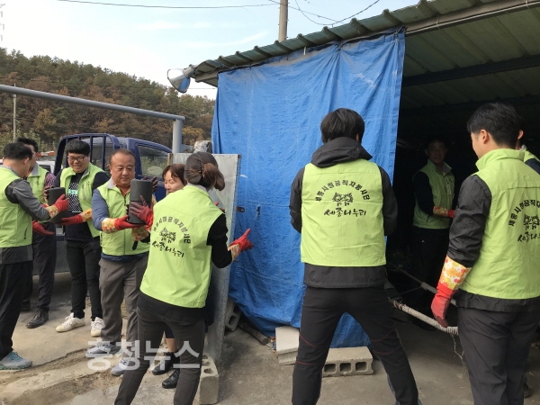 세종시(시장 이춘희) 건축과 직원들은 7일 전동면 송정리의 기초생활수급 가구를 방문, 사랑의 연탄 330장을 배달하고, 청소 등 자원봉사활동을 펼쳤다.