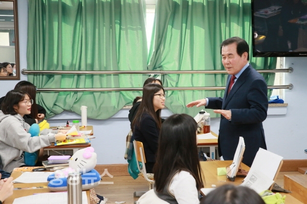 김지철 충남교육감은 지난 7일 오후 금산여고를 방문해 대학수학능력시험을 앞둔 고3 학생들을 격려했다.