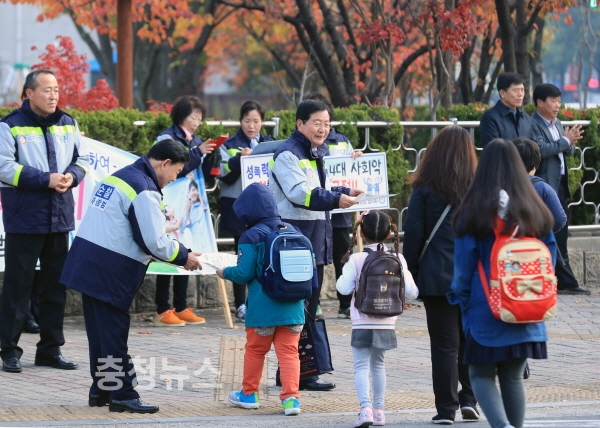 장종태 서구청장은 지난 7일 월평초등학교 앞에서 주민자율방범대 서구협의회 방범대원 30여 명과 함께 성폭력 예방 및 가정폭력 방지 캠페인을 전개했다.