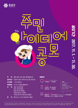 2017 유성구민제안 아이디어 집중 공모, 30일까지
