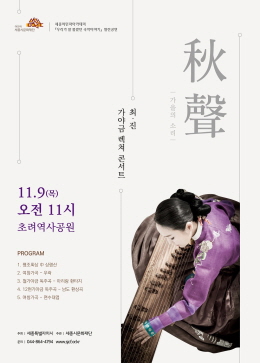 세종시문화재단, "국악의 가을 소리 들으러 오세요"