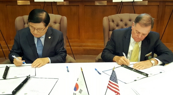 이어, 조지아주 글린 카운티에 도착해 주요 시설 및 관광지를 둘러본 뒤 9일(한국시간) 글린 카운티 법원에서 한상기 태안군수와 빌 브런슨(Bill Brunson) 글린 카운티 의회 의장, 알렌 아워스 행정관리관 등이 참석한 가운데 양 도시 간 우호교류 협약서를 교환했다.