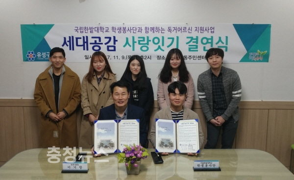 대전 유성구 온천1동(동장 이기창)은 9일 주민센터에서 국립한밭대학교 학생봉사단 30여명과 관내 독거어르신을 결연하는 사업을 추진하는 결연식을 가졌다고 밝혔다.
