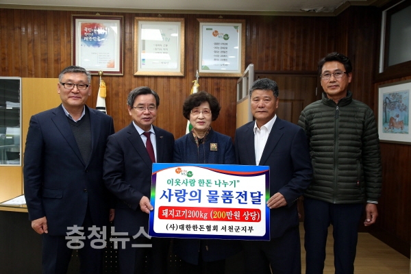 이 날, 또 다른 기탁을 한 (사)대한한돈협회 이청균 서천군지부장은 “우리 한돈이 이웃들에게 사랑과 희망을 함께 나누는 에너지가 되길 바라는 마음”이라며 “앞으로도 꾸준한 나눔활동으로 훈훈한 분위기를 조성하는데 일조하겠다”고 말했다.