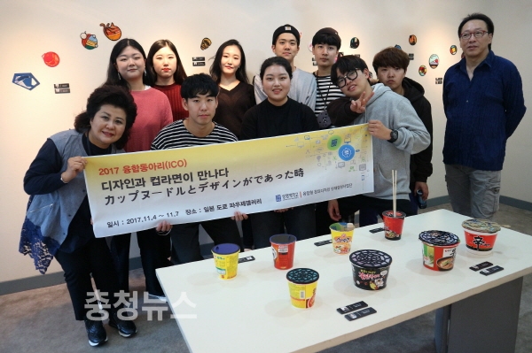 상명대학교(총장 백웅기) '창조경제를 선도하는 융합형 창의디자인 인재양성 특성화 사업단'(이하 창의디자인 사업단) 소속 학생들이 지난 4일부터 7일까지 일본 동경 신주쿠에 위치한 ‘파우제 갤러리(Gallery PAUSE)’에서 컵라면에 디자인을 접목한 전시회를 개최해 현지 관람객들로부터 높은 평가를 받았다.
