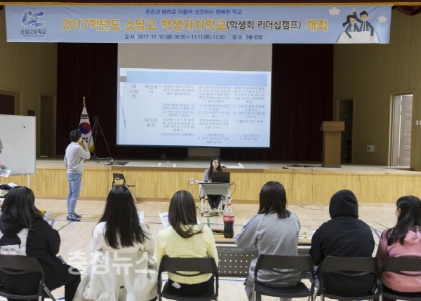 소담고등학교(교장 백승환)는 지난 10 ~ 11일 양일간 소담고 시청각실 등에서 학생회 임원 28명이 참여한 ‘2017년 학생자치학교’를 개최했다.
