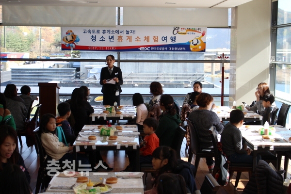 한국도로공사 대전충남본부(본부장 권오철)는 지난 11일 지역아동센터 어린이와 부모님 40명을 초청해 금강휴게소에서 수상보트와 오리배타기, 햄버거 만들기 등 체험 행사를 실시했다