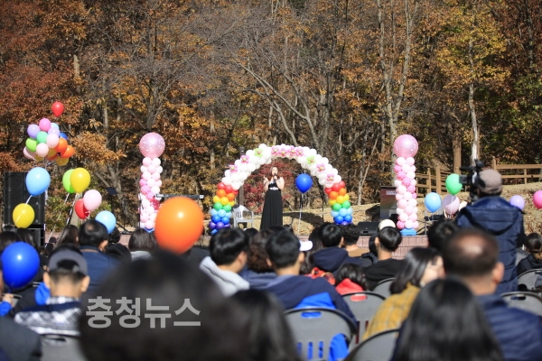 숲속 작은 음악회는 가을과 어울리는 논산시립합창단 베이스 최설과 알토 손지유를 비롯해 청소년동아리 ‘이데픽스’,‘어플로우’, 뮤직밴드 티나, 혼성듀오 마오 등이 출연해 늦가을을 즐거움으로 물들였다.