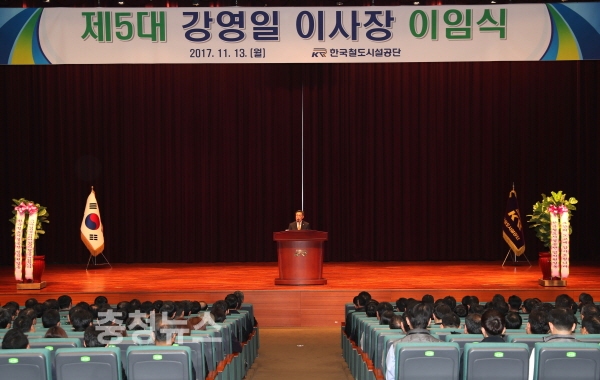 철도공단 강영일 이사장은 지난 13일 철도공단 본사(대전시 동구 중앙로 242)에서 임직원 약 600여명이 참석한 가운데 이임식을 가졌다.