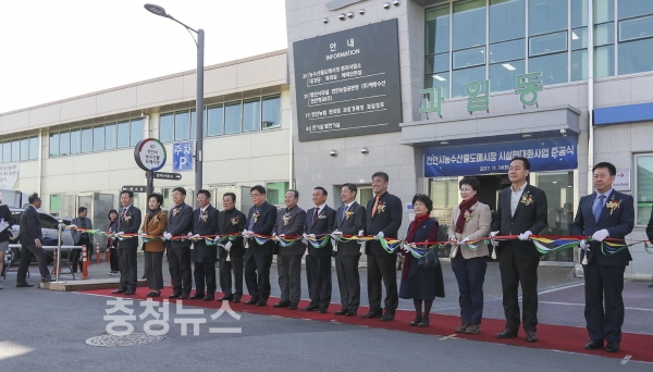 충남 천안시는 14일 구본영 시장, 허승욱 충청남도 정무부지를 비롯해 법인과 중도매인, 종사자 등 300여명이 참석한 가운데 시설현대화사업 준공식을 개최했다.