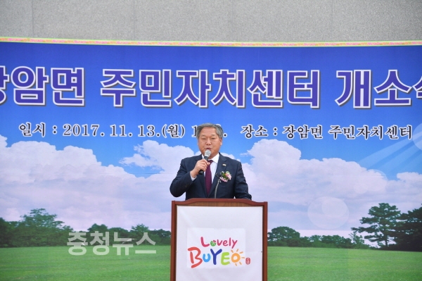 충남 부여군(군수 이용우)은 지난 13일 장암면 주민자치센터에서 이용우 군수를 비롯한 지역주민 및 마을이장, 기관단체장 등 500여명이 참여한 가운데 개소식을 가졌다.