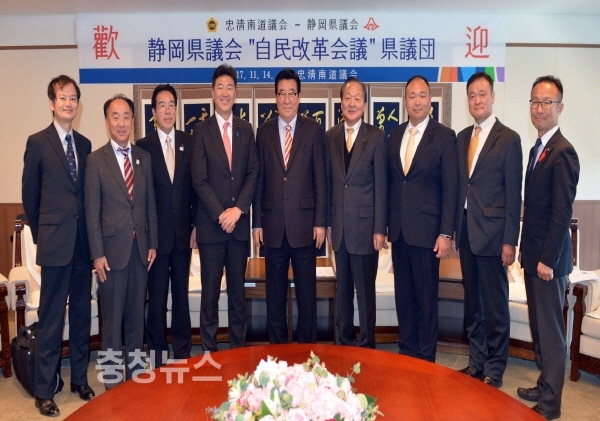 충남도의회(윤석우 의장)는 14일 충남도를 방문한 일본 시즈오카현 자민개혁회의현의단(이하 자민당) 의원들을 만나 양 의회 간 상호협력 방안을 논의했다.