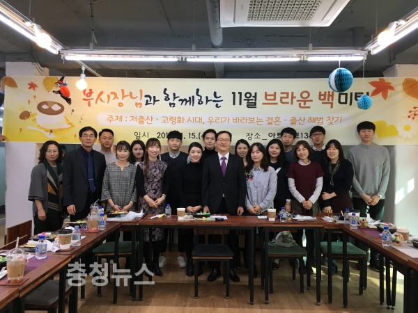 지난 10월에 취임한 이필영 부시장은 15일 아트큐브136에서 ‘저출산·고령화 시대, 직원이 바라보는 결혼·출산 해법’이란 주제로 브라운 백 미팅을 열어 직원들과 격의 없이 의견을 나눴다.