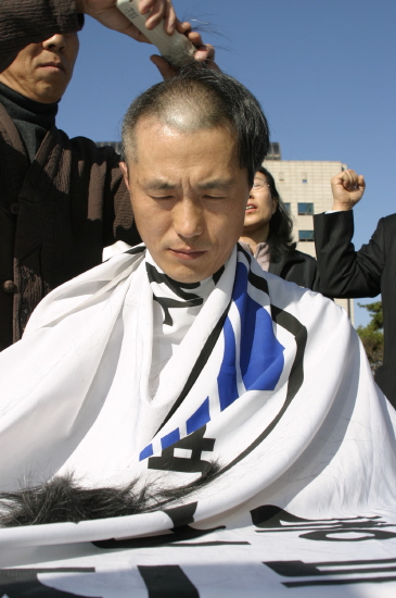 이어 성광진 지부장의 삭발식을 가졌다. 삭발식 후에 “학교불신과 교육불신을 교원들에게 전가하려는 교육부에 대한 대전 1만여 교사의 분노의