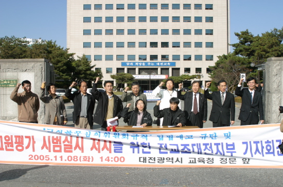 또 대전시교육감에게 시범학교 선정 작업에 참여하지 않을 것을 요구하며 대다수 교원들이 반대하는 교원평가를 받아들여 대전교육을 질곡에 빠뜨릴