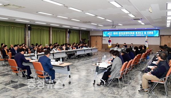 대전 중구(구청장 박용갑)는 15일 대회의실에서 축제추진위원과 관련분야 전문가 등 80여 명이 참석한 가운데 ‘제9회 대전효문화뿌리축제 평가보고회 및 토론회’를 개최했다.