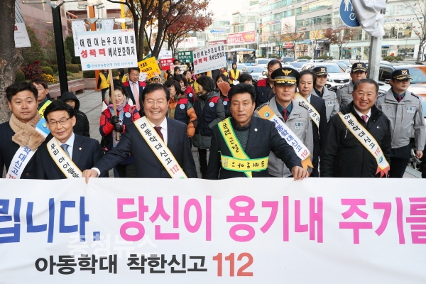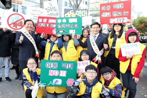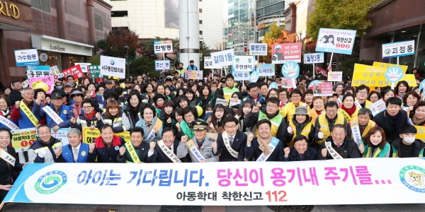 이날 행사에는 아동 관련 26개 기관과 시민․봉사단체 회원 600여 명이 참여해 아동학대 예방 결의대회를 갖고, 둔산동 일원에서 아동학대 예방을 위한 거리 캠페인을 전개했다.
